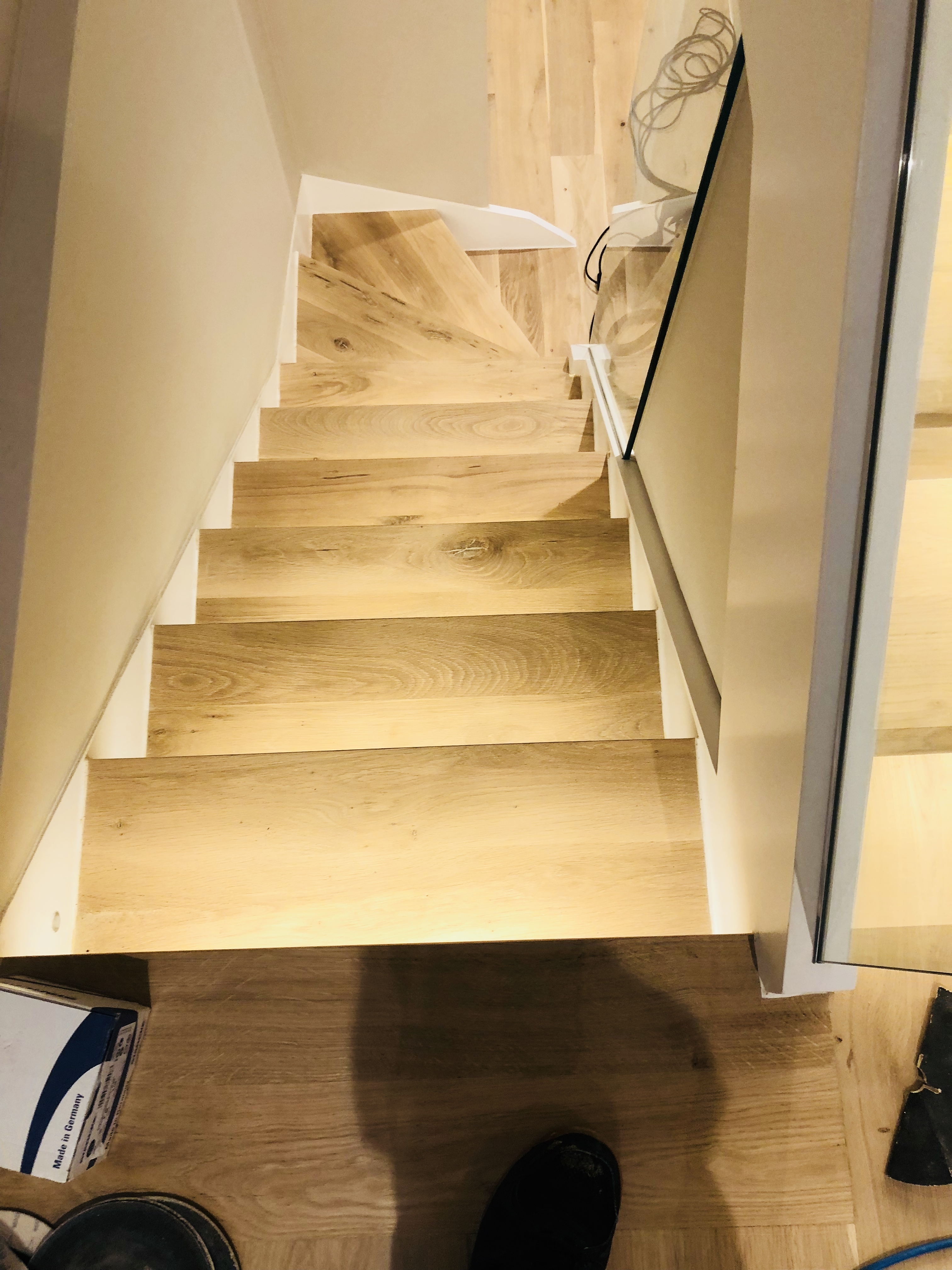 The completed solid wood installation looked clean and finished throughout. Joins are tight, edges are neat, and the floor sits flat and stable. Beading and threshold strips were fitted where required to complete the job properly. The client was pleased with both the quality of the work and the appearance of the new floor.