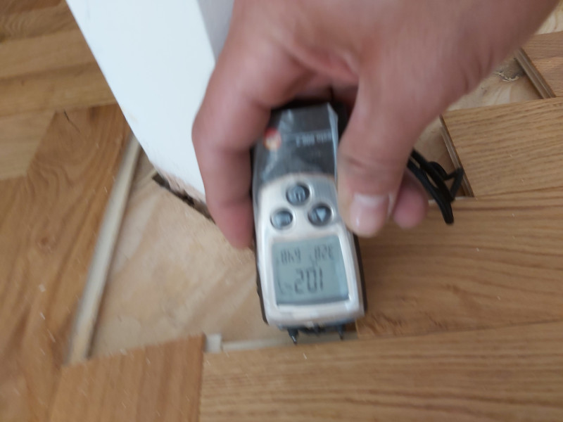Prior to installation, the existing floor covering was inspected and the subfloor was prepared to ensure it was flat, dry, and suitable for the new parquet. Any existing floor covering was lifted and disposed of cleanly before the fitting work began.