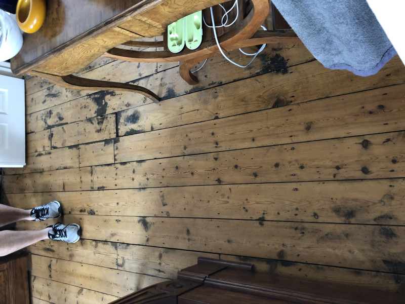 Survey photos showing the floor condition before work: