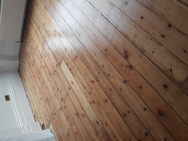 Prices typically range from £25 to £45 per square metre depending on floor condition, finish type, and any repair work required. Gap filling and board replacement are priced separately if needed.