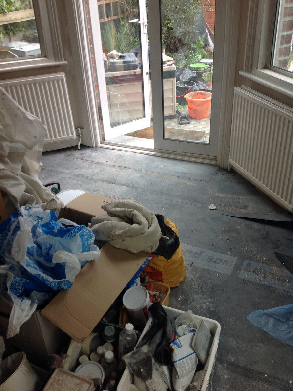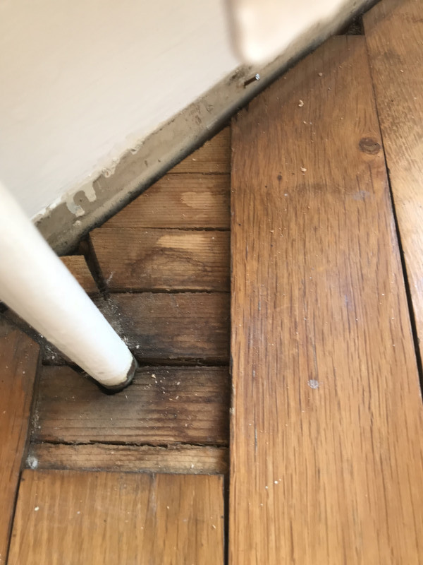 Survey photos showing the floor condition before work: