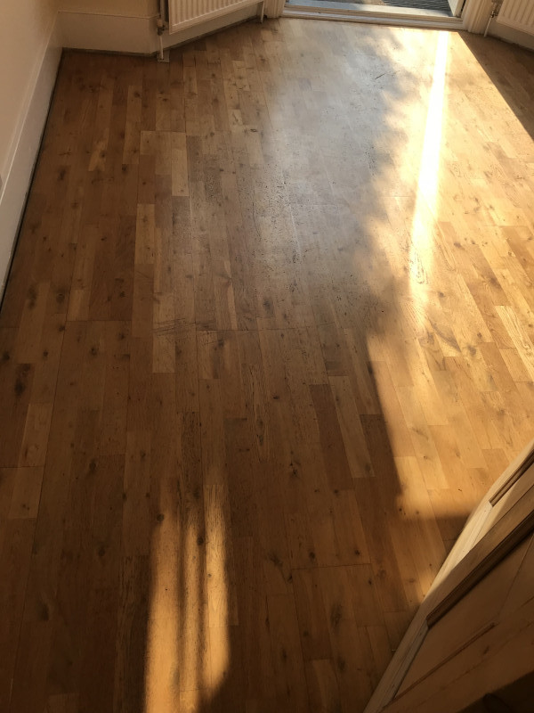 Before work began, the floor showed typical signs of wear. Surface scratches, dull patches, and general finish deterioration were present. A thorough survey was carried out to plan the correct sanding depth, assess board condition, and choose the most appropriate finish for the space.