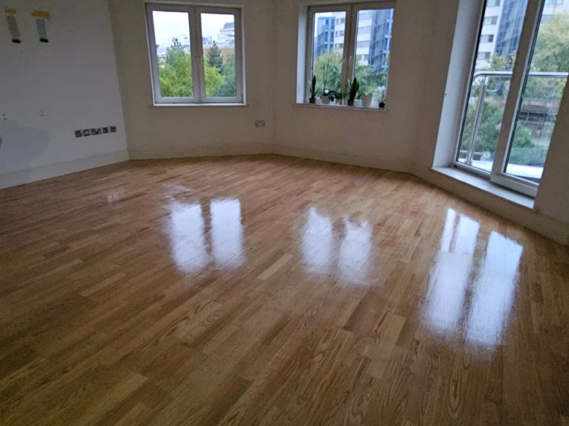 Our team began with a deep clean and careful sanding process to remove years of buildup. Every panel was evaluated individually to ensure the unique grain and pattern were preserved. We then applied a custom-toned finish to enhance the natural oak hues, followed by sealing for durability and long-lasting beauty. The result was a fully revitalized floor that radiated warmth and historical charm.