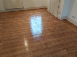 Once the sanding and finishing process was complete, the floor was transformed. The wood grain was opened up and brought back to life, the surface was smooth and even, and the new finish provided lasting protection. The client was left with a floor that looked, and performed, as good as new.