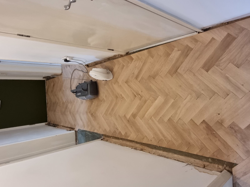 Professional floor sanding and restoration in N8, London. Our team restored this parquet floor using dustless sanding equipment and quality finishes. The result is a clean, smooth surface that will last for years.