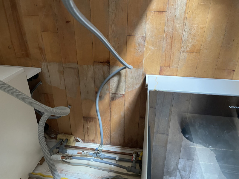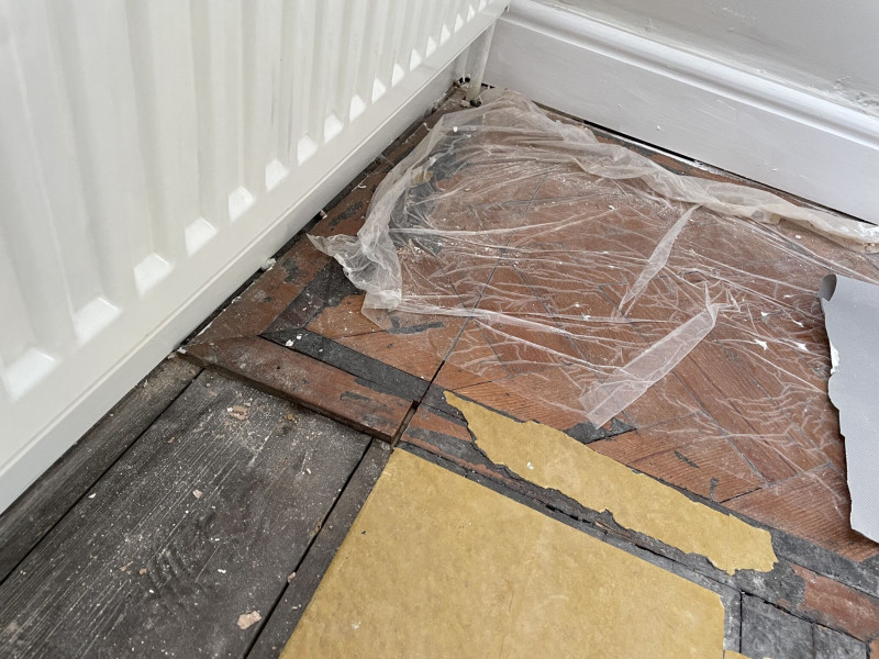 Survey photos showing the floor condition before work: