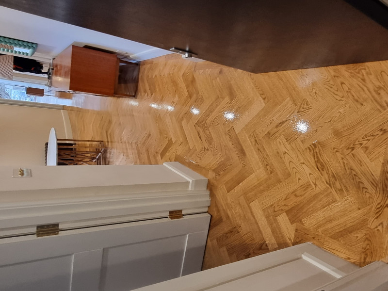 Professional floor sanding and restoration in N1, London. Our team restored this parquet floor using dustless sanding equipment and quality finishes. The result is a clean, smooth surface that will last for years.