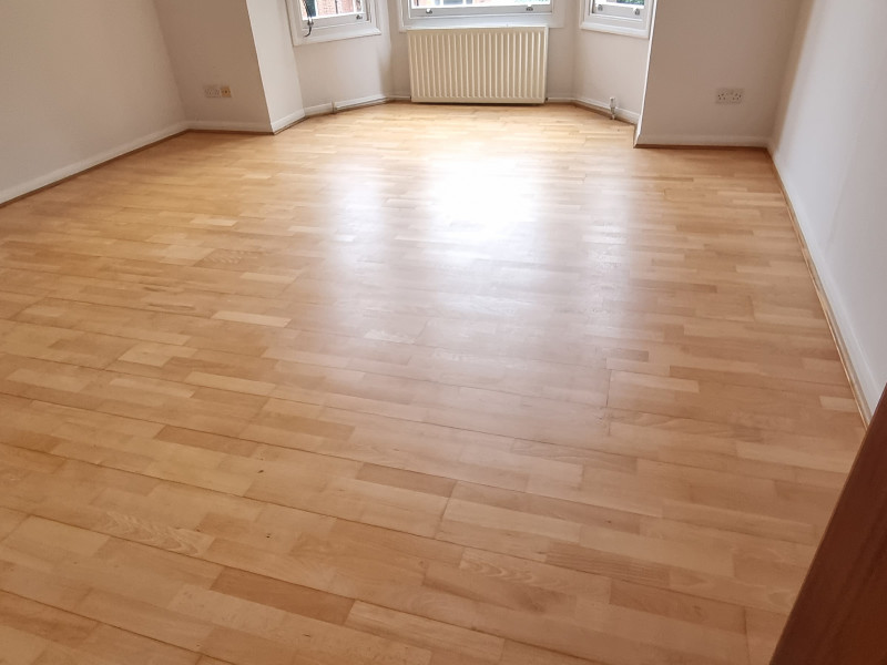 Professional floor sanding and restoration in NW6, London. Our team restored this engineered wood floor using dustless sanding equipment and quality finishes. The result is a clean, smooth surface that will last for years.
