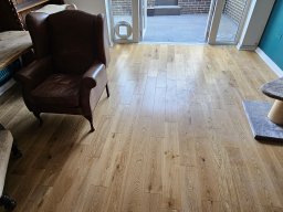 Once the sanding and finishing process was complete, the floor was transformed. The wood grain was opened up and brought back to life, the surface was smooth and even, and the new finish provided lasting protection. The client was left with a floor that looked, and performed, as good as new.