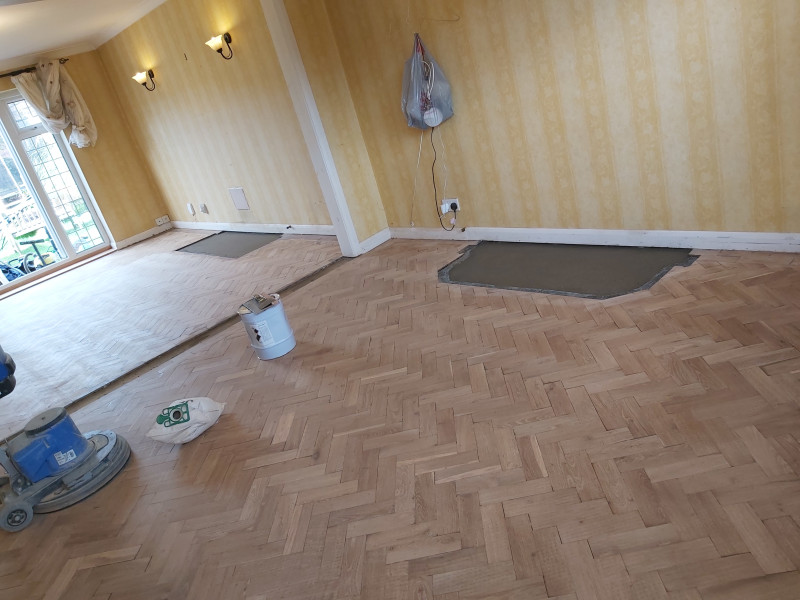 This project involved the professional sanding and restoration of an existing wood floor at a property in KT10, Esher. The floor had seen years of daily wear and was in need of attention to bring it back to a quality finish. Our team carried out a full assessment before starting work, checking for any boards that needed attention alongside the main sanding and finishing work.